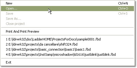 This command allow you to start a new project file. If any project is opened, the software ask for confirmation before discharge changes. This command automatically assigns a default name for the new diagram